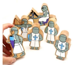 6 Figurines Chevaliers En Bois Bleus Et Blancs Personnage Jeu
