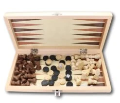 Coffret échecs / Dames Anglaises / Backgammon 30 Cm En Bois – 3 Jeux En 1