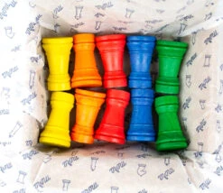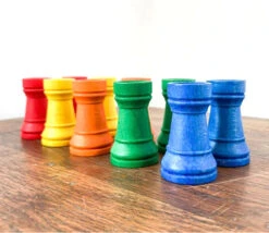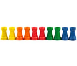 Pions en bois de hêtre tours colorées, 2 pièces de chaque couleur (jaune, orange, rouge, bleu, vert).