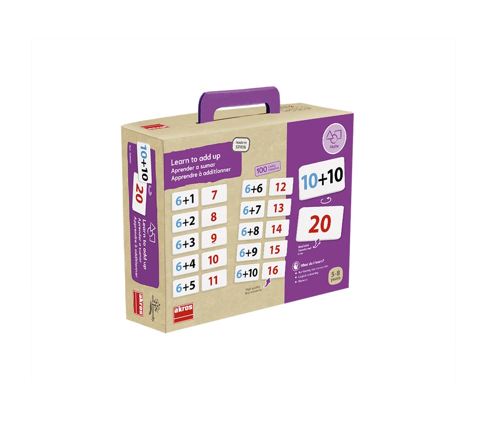 Set de 100 cartes en carton rigide et résistant avec additions jusqu’à 10 + 10 – dimensions 3.5 x 6 cm –