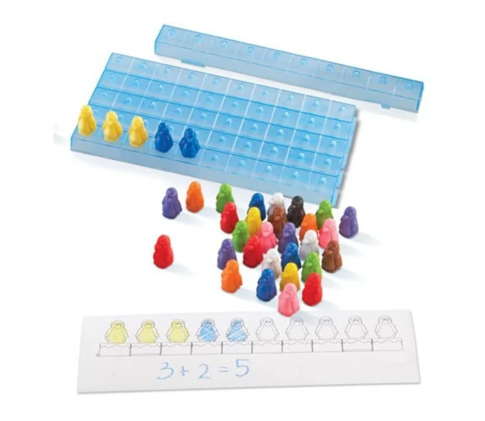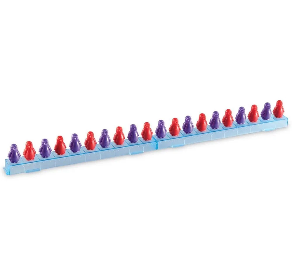 Peut s’utiliser en motricité fine ranger les différents pingouins sur les blocs de glace, dans le bon sens, bien les clipser sur la barre…