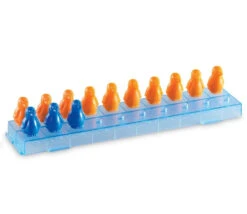 Accessoire de jeux mathématiques pour la manipulation des calculs. Bande de 10 jetons à manipuler pour comprendre les opérations mathématiques. Idéal dès le CP, ce socle avec pions s’utiliser aussi en classes supérieures pour aider les enfants à bien assimiler les mouvements de chiffres.