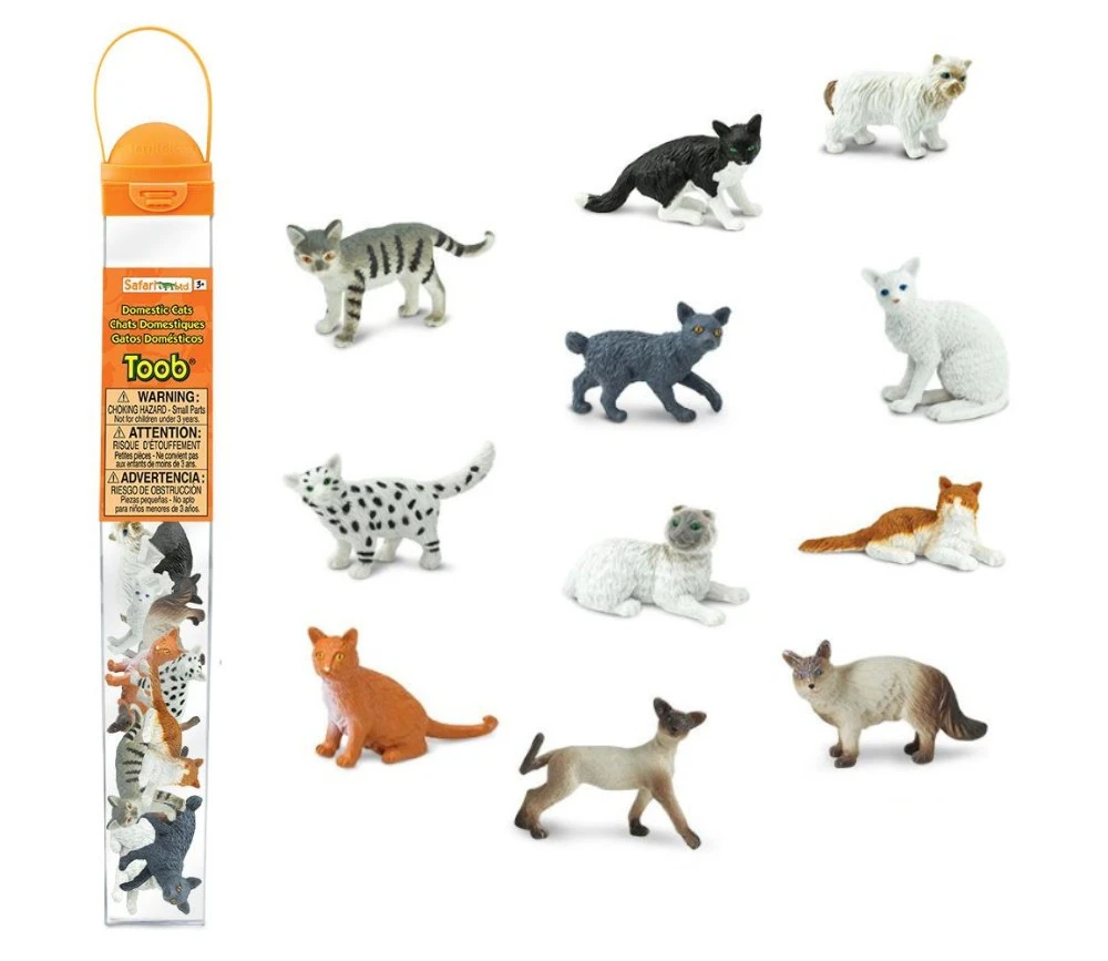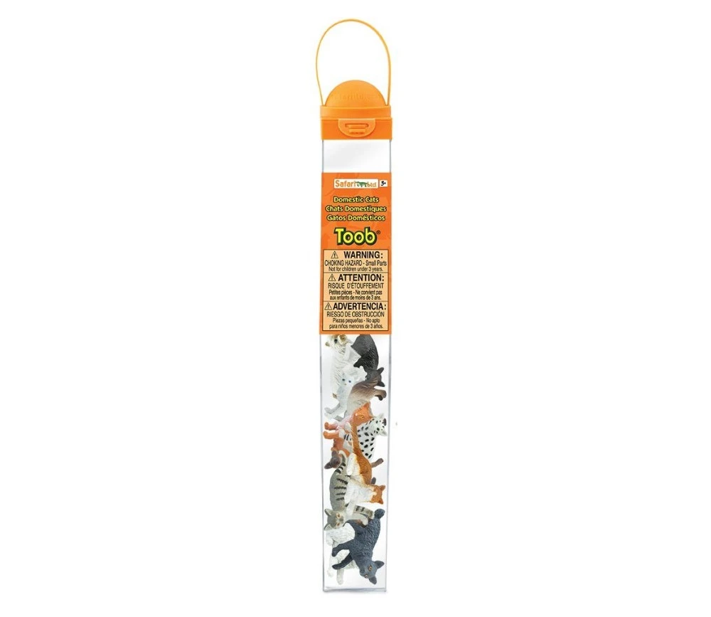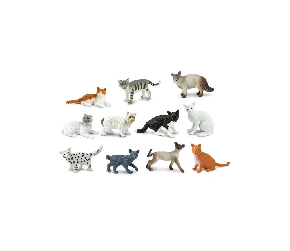 Tube de 11 figurines chats domestiques en plastique pour enfants et jeux.