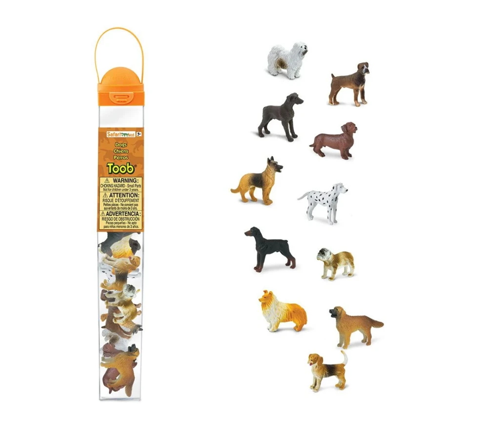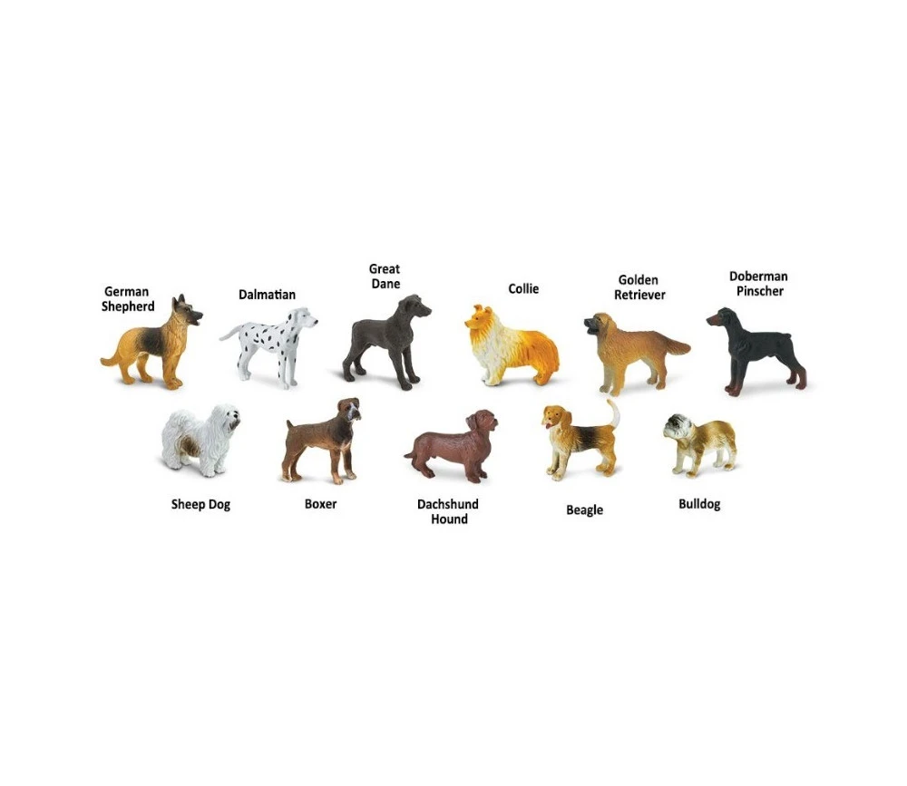 Tube de 11 figurines chiens en plastique pour enfants et jeux, 11 races différentes.