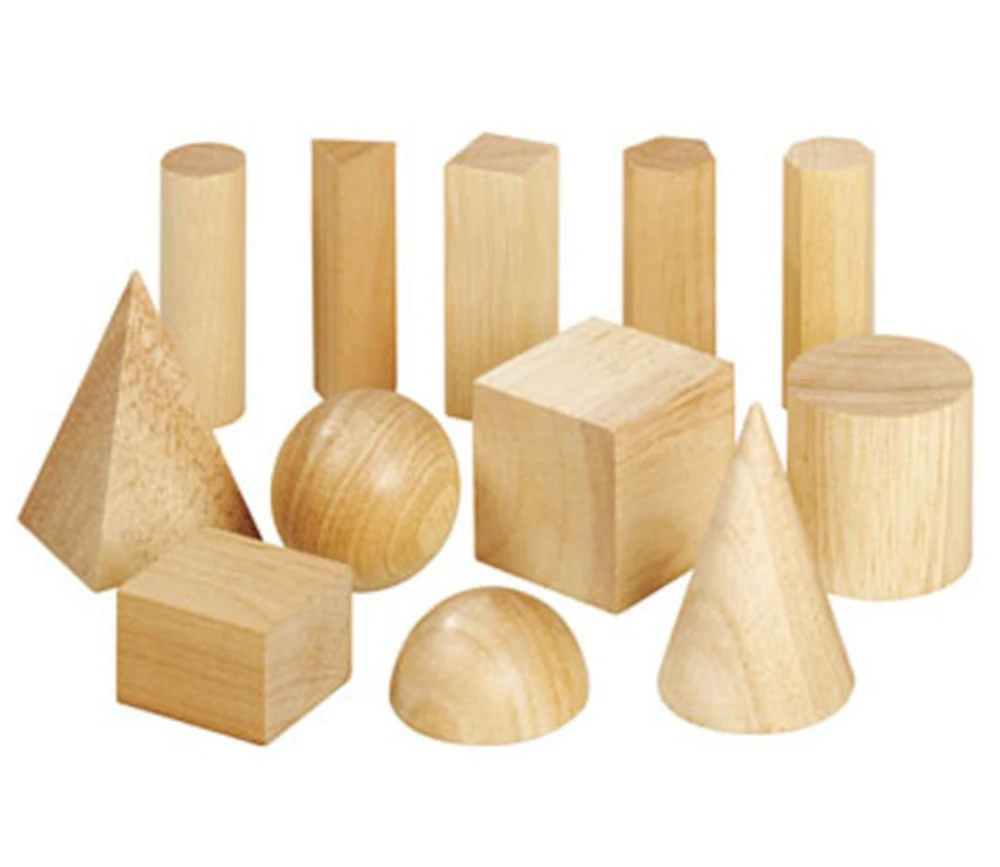 Belles pièces en bois de qualité en forme de pyramide, sphère, demi-sphère, cube, cône…