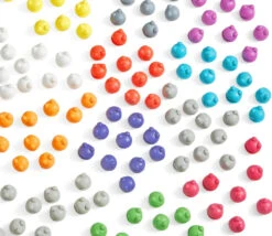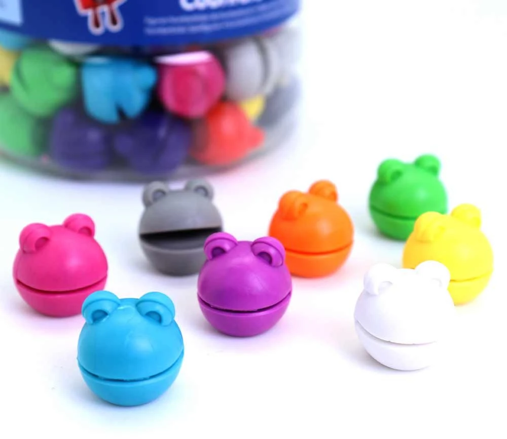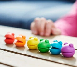 120 grenouilles Numberblobs en plastique doux et aux couleurs pastels.