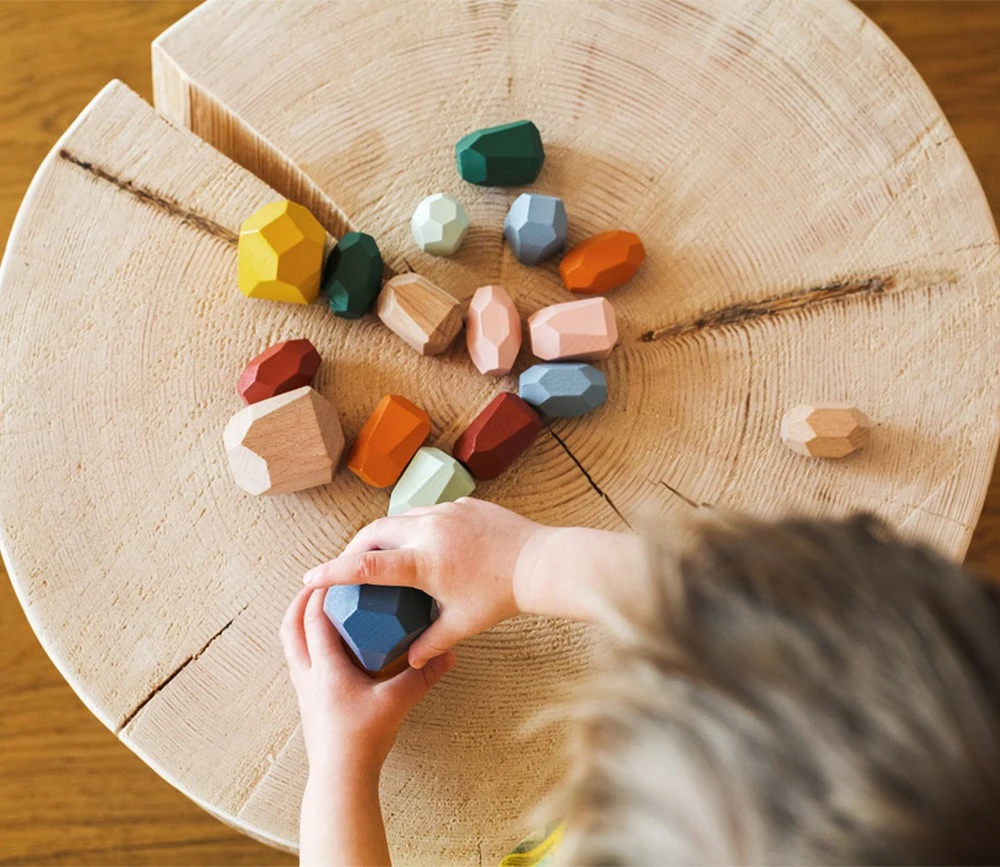 Pierres d’équilibre en bois avec 6 couleurs pastel de belle qualité.