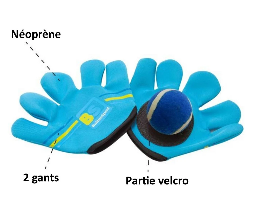 Au centre de chaque gant, une bande auto-agrippante permet d’attraper facilement la balle. Idéal pour jouer sur la plage, dans le jardin, au parc.