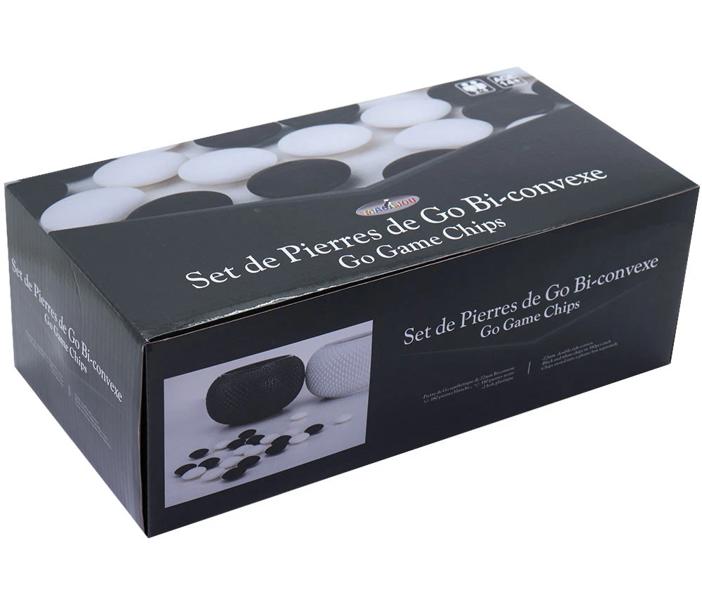 ban. Forme traditionnelle du jeu de go, le bas et le haut d’une pierre sont arrondis. Les pions de go noir et blanc sont lisses au toucher grâce à la résine synthétique. Agréables et facile à attraper.