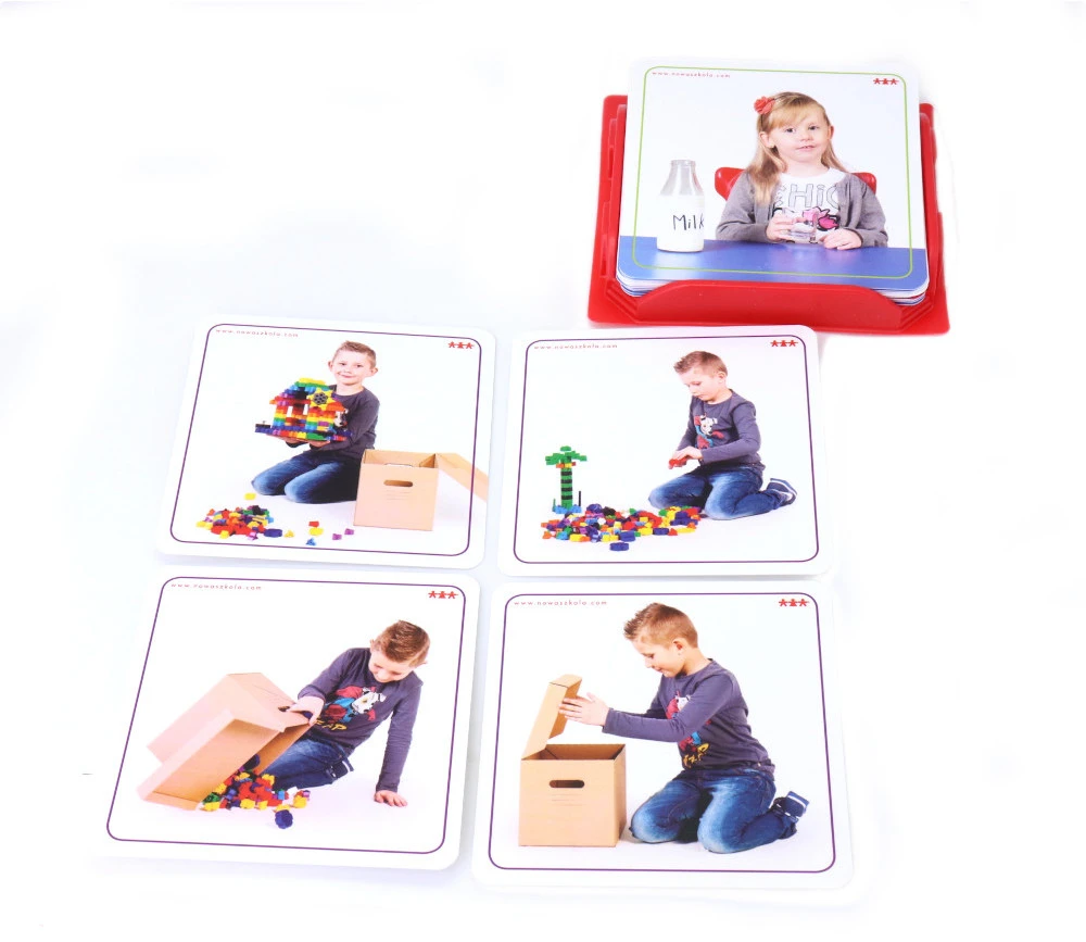 Jeu éducatif : il faudra aligner les 4 cartes correspondants à une séquence et les mettre dans le bon ordre pour organiser l’action.