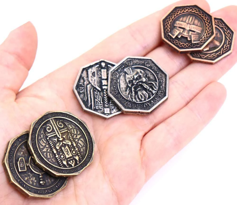 Ces pièces pour vos jeux sont en métal gravé sur les deux faces. Thème Dwarven Viking. Fabricant Drawlab.