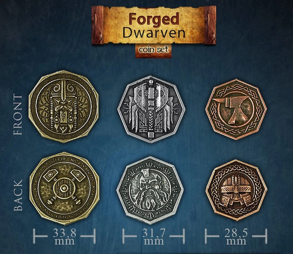 Pièces de monnaie en métal Forged Dwarven. Coins season 6. Coins ronds épaisseur 3 mm