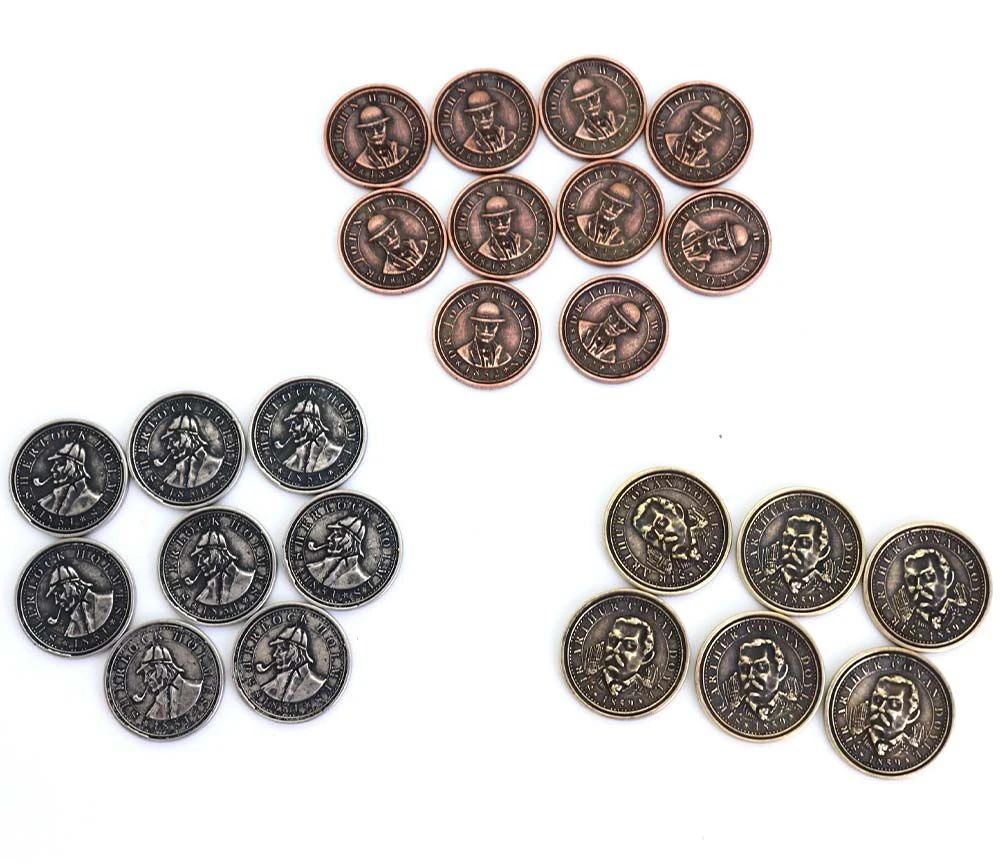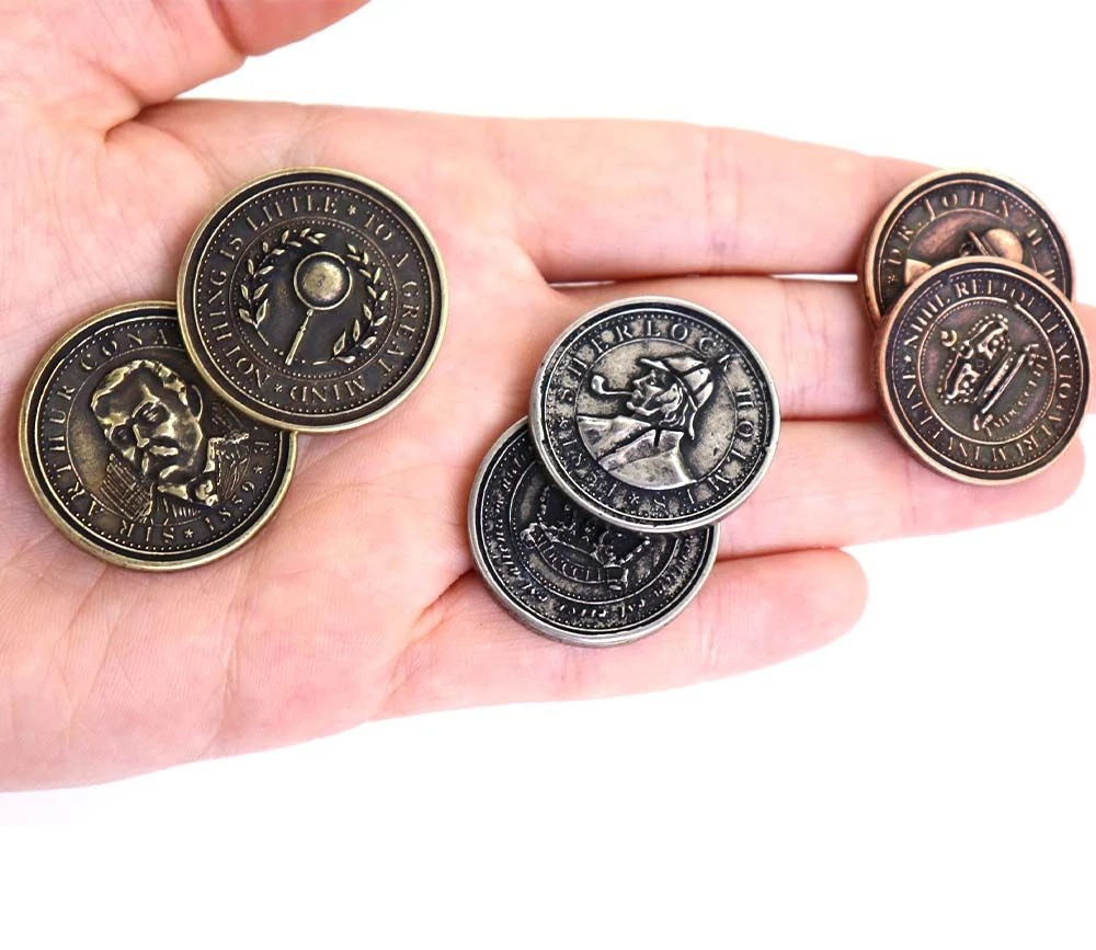 Pièces de monnaie en métal avec gravage Thème Sherlock Holmes des années 1850-1851. Coins épaisseur 3 mm
