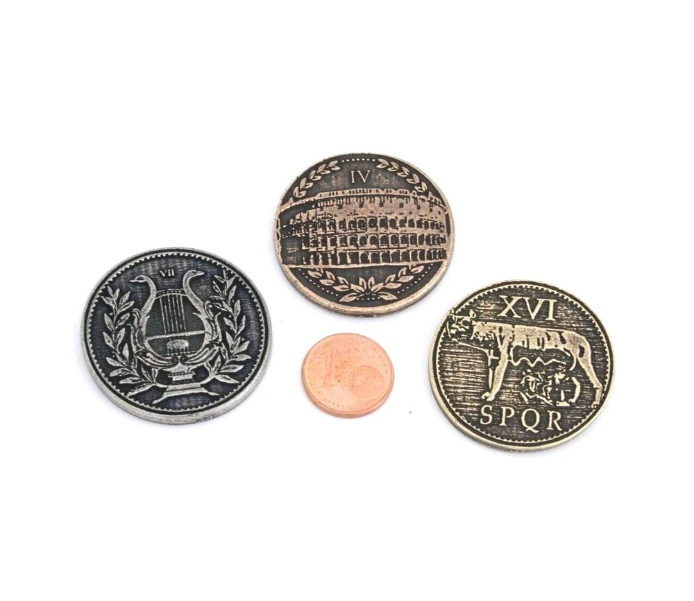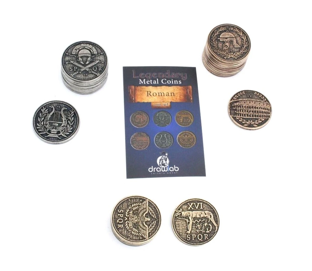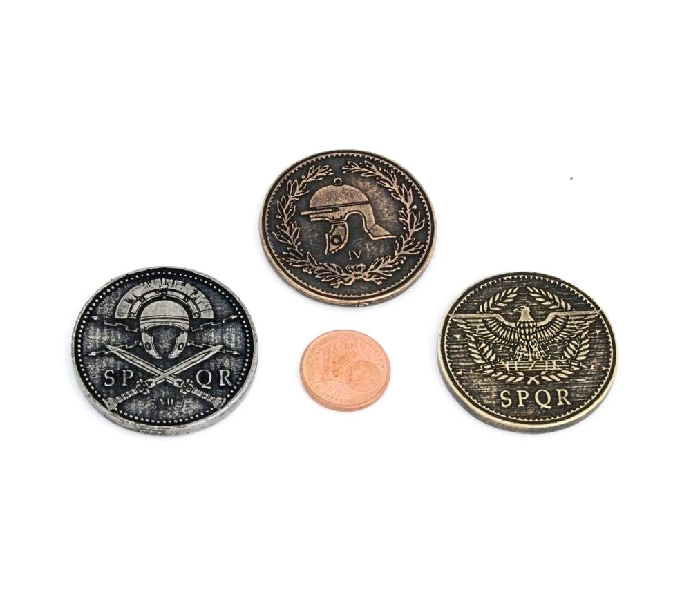 Ces pièces pour vos jeux sont en métal gravé sur les deux faces. Thème Romain Legendary. Fabricant Drawlab.