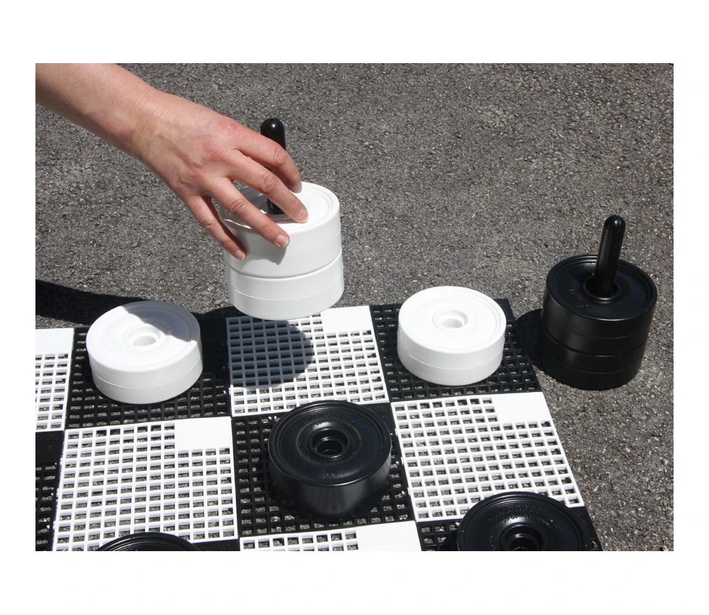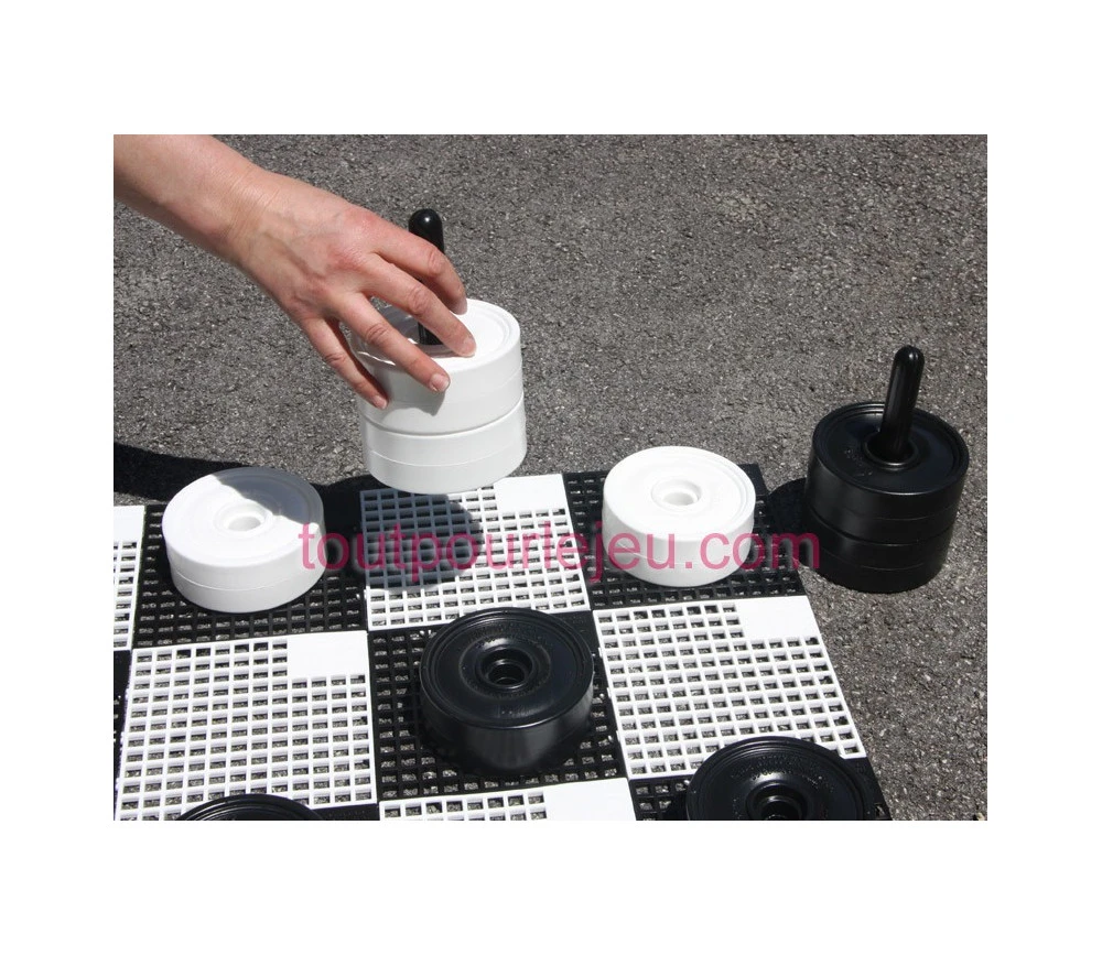 Pions de Dames XXL en plastique résistant pour jouer en extérieur. Profitez du beau temps pour jouer en plein air dans votre jardin ou sur une terrasse.