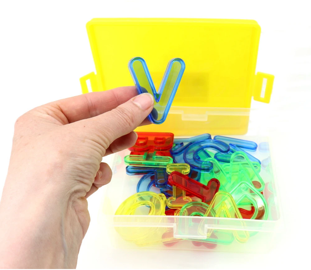 Grandes lettres majuscules colorées et translucides pour vos jeux, apprentissage à l’école ou à la maison.