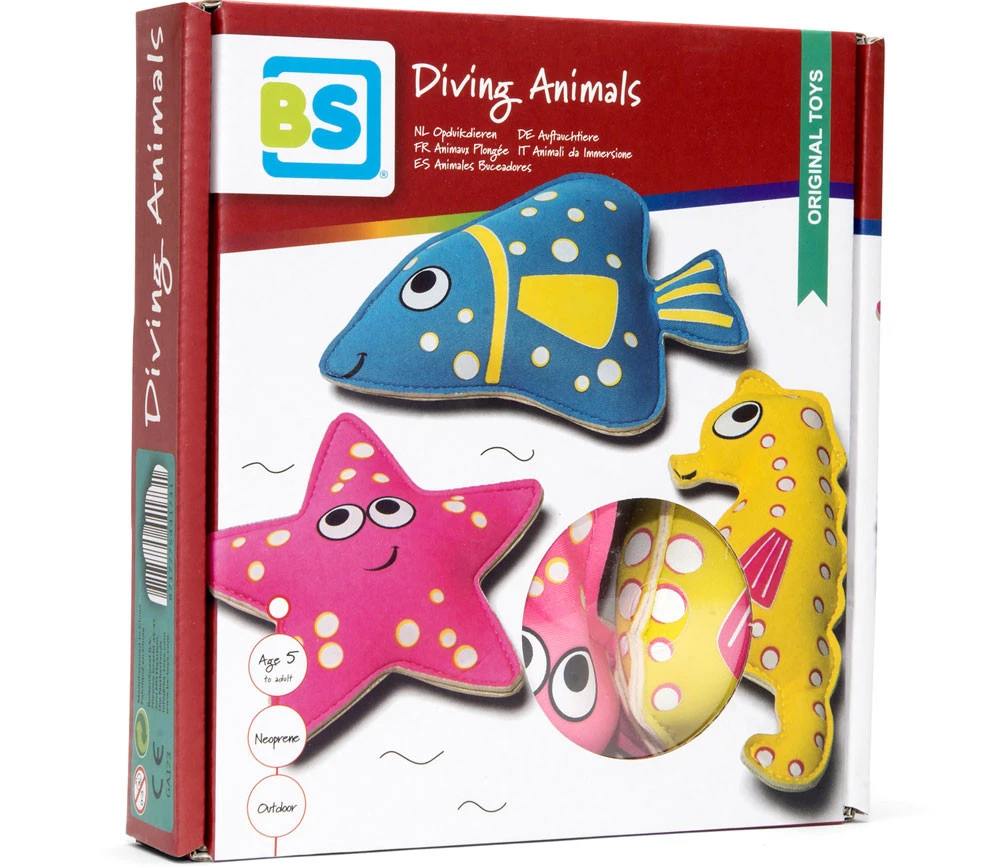 Lot de 3 animaux de plongée lestés avec des billes à l’intérieure. Ces jouets coulent au fond de l’eau.