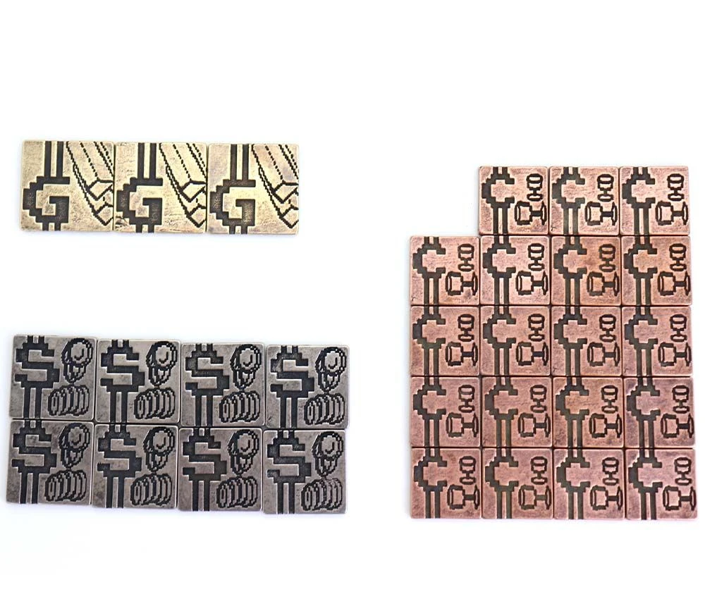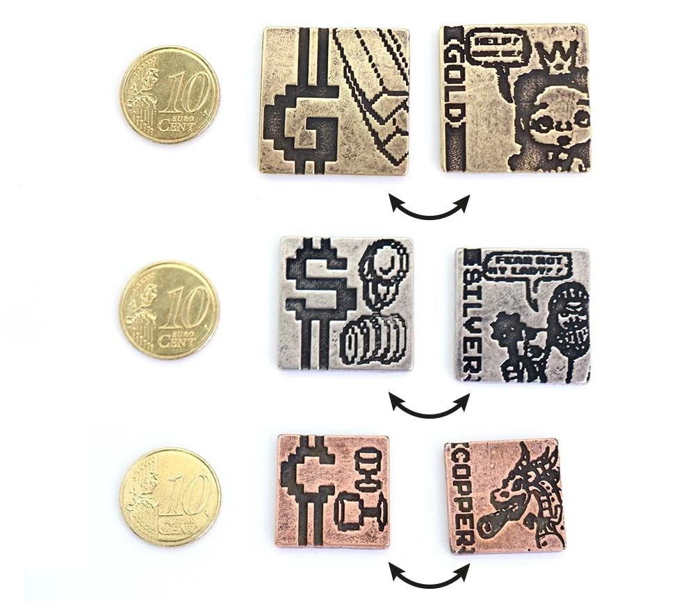Ces pièces pour vos jeux sont en métal gravé sur les deux faces. Thème Pixel Art. Fabricant Drawlab.