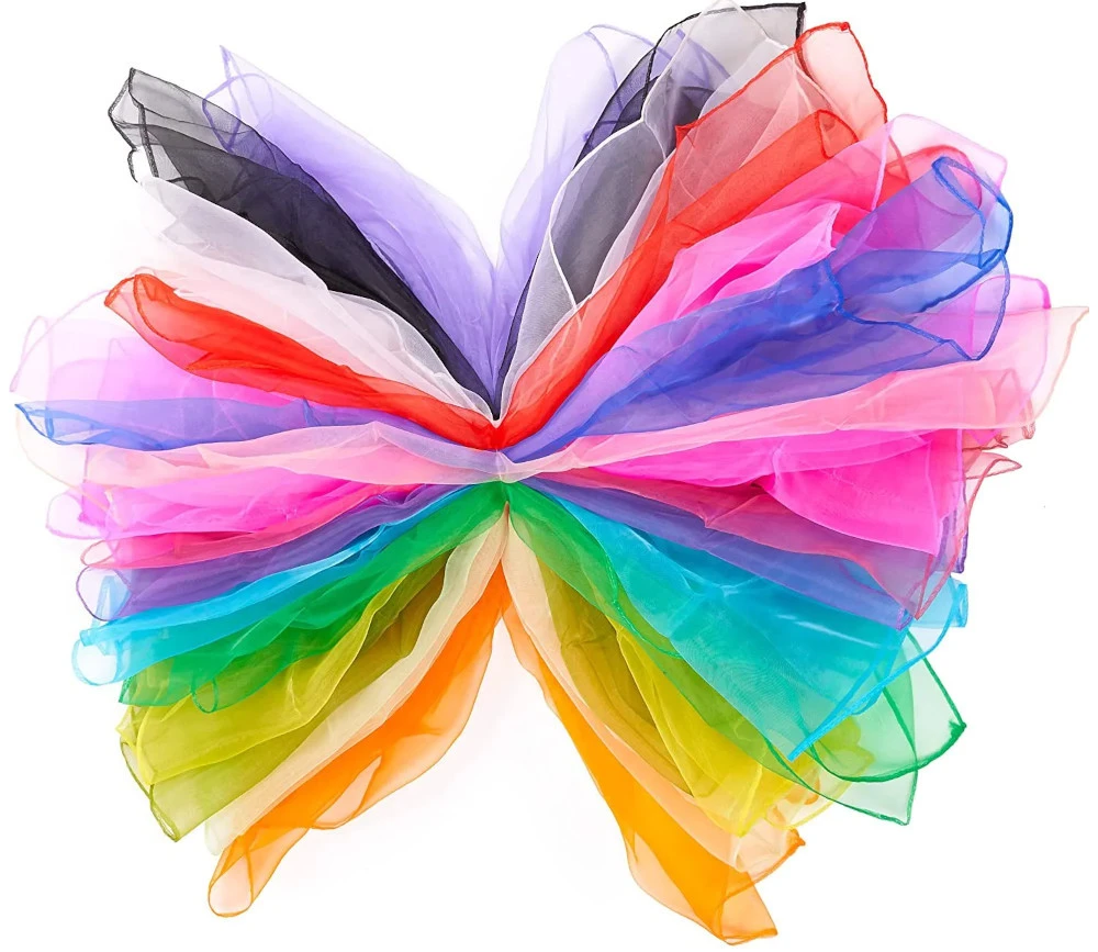 32 foulards de jonglage colorés 60 x 60 cm pour jonglage, magie, cirque ou jeux.