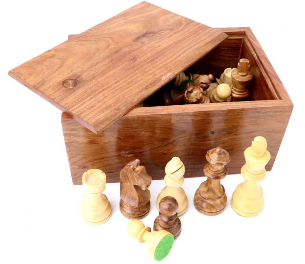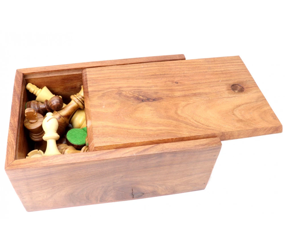 Composition Set complet de 32 pièces pour échecs en bois (buis pour les blancs et palissandre pour les noirs) dans une boite en bois