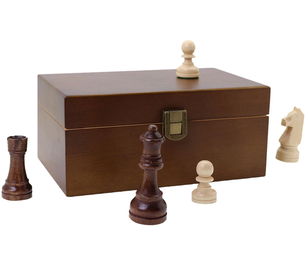 Le coffret de rangement en bois accueille parfaitement toutes les pièces de jeu sans difficulté. Avec une fermeture type métal, la boîte à jouer s’ouvre et se ferme facilement tout en gardant une position stable. La boîte possède une séparation au milieu pour offrir deux compartiments de rangement, pour les pièces noirs et les pièces blanches d’échecs. Pratique, la boîte en bois marron permet de ranger les pions d’échecs pour organiser son jeu d’échecs.