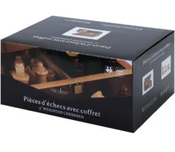 Le set de 32 pièces pour jeux échecs et coffret en bois est composé de beaux pions d’échecs de 2 couleurs différentes : dame, roi, fou, tour et pions.