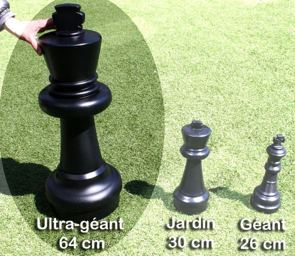 Pièces de jeu d’échec en plastique géantes de taille 63 cm pour le roi.