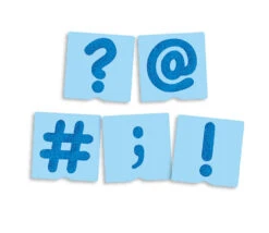 Grandes fiches rugueuses tactiles avec lettres et signes de ponctuation en relief.
