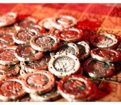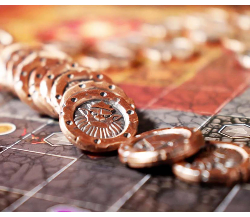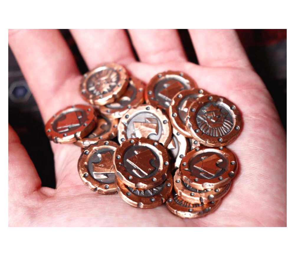 Métal coins cuivrées de 2 cm de diamètre que vous pouvez utiliser comme jeton pour vos jeux de plateau thème fantastique et jeux de rôles.