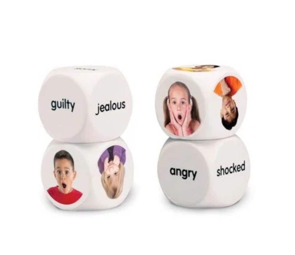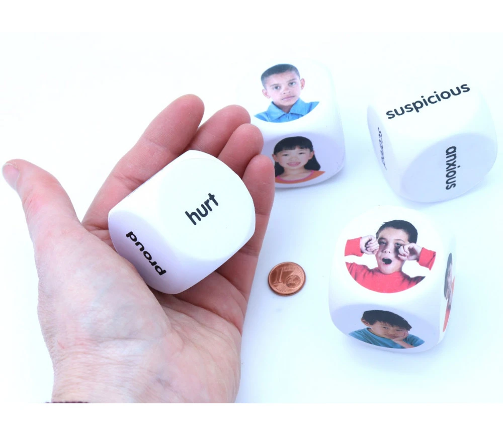 Dé à jouer avec des émotions à transcrire sur les 6 faces du dé. Sur chaque face du dé, vous retrouverez des émotions différentes.