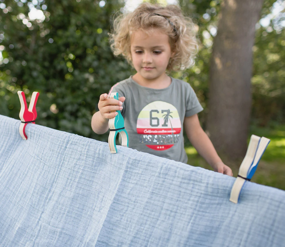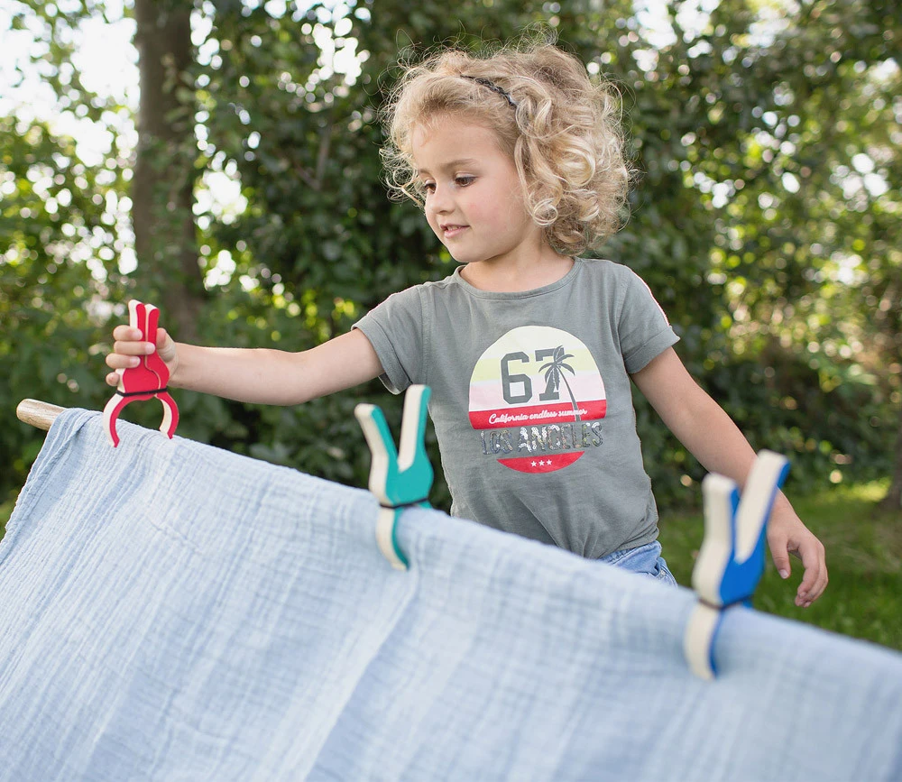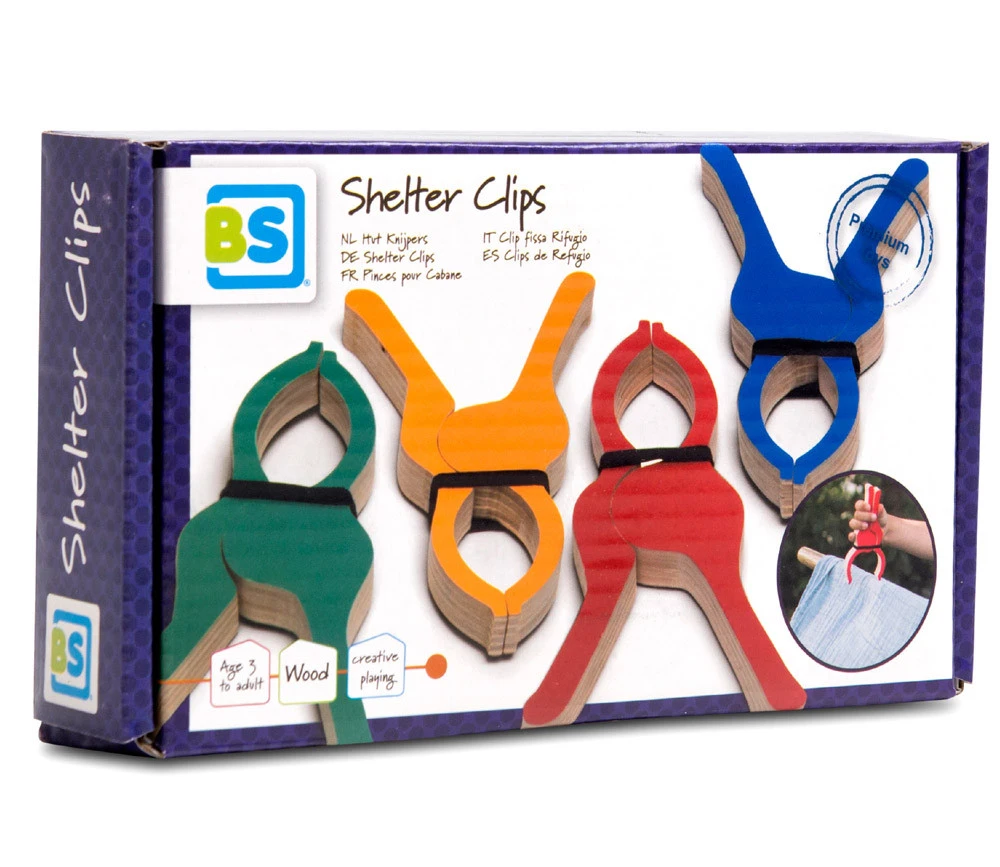 4 clips en bois pour fixer tissu et carton pour fabriquer une super cabane.