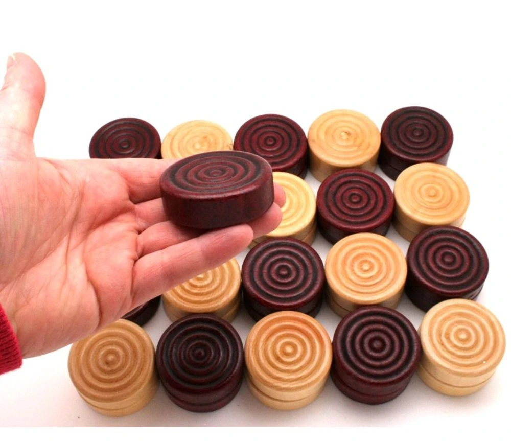 40 pions géants foncés et clairs pour jeu de dames géante. Pions en bois de 4.5 cm de diamètre pour une épaisseur de 1.5 cm