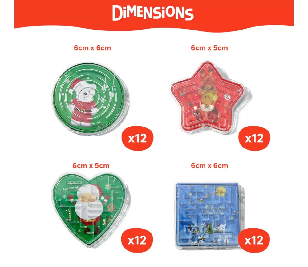 Set de 48 mini jouets labyrinthes en plastique sur le thème de Noël. Lots et et petits cadeaux enfants pour vos jeux, cadeaux de Noël, décorations de table…
