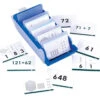 2 formes de pierres en plastique jaune, orange, rouge, vert et bleu.