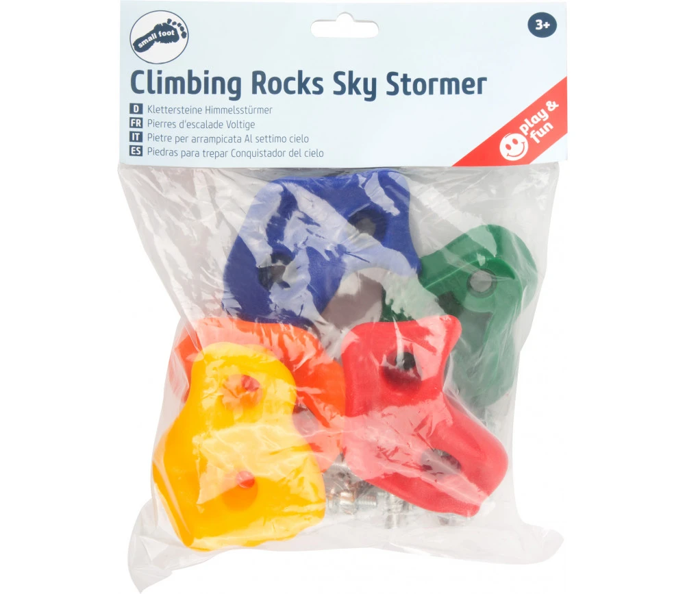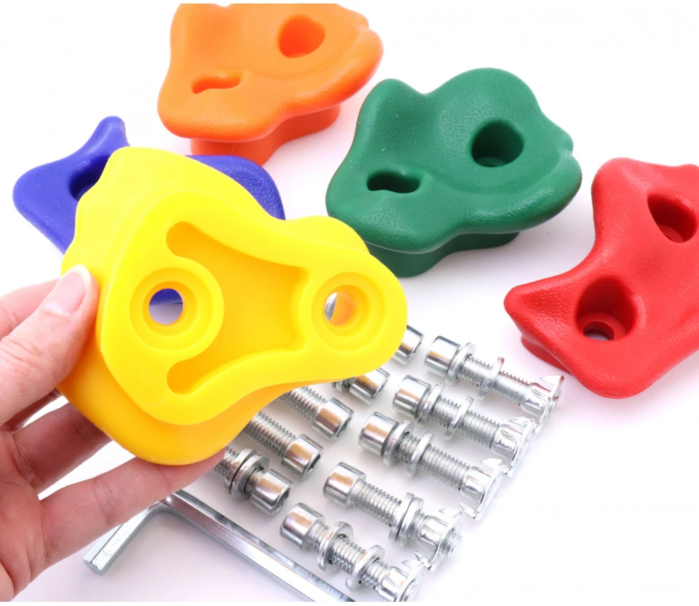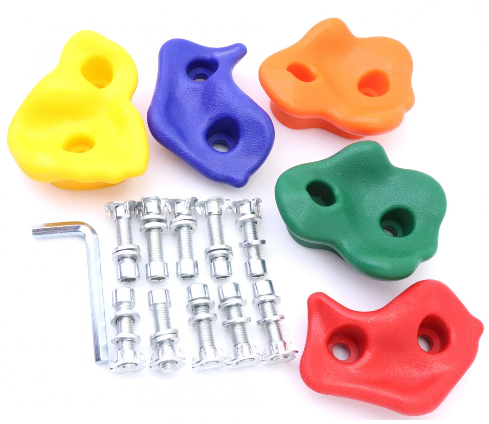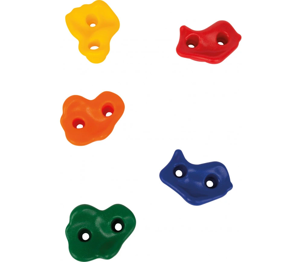 Set de 5 pierres d’escalades colorées en plastique à fixer (matériel de fixation inclus).