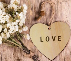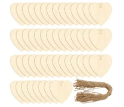 50 cœurs en bois avec un trou en forme de cœur également pour passer un ficelle.