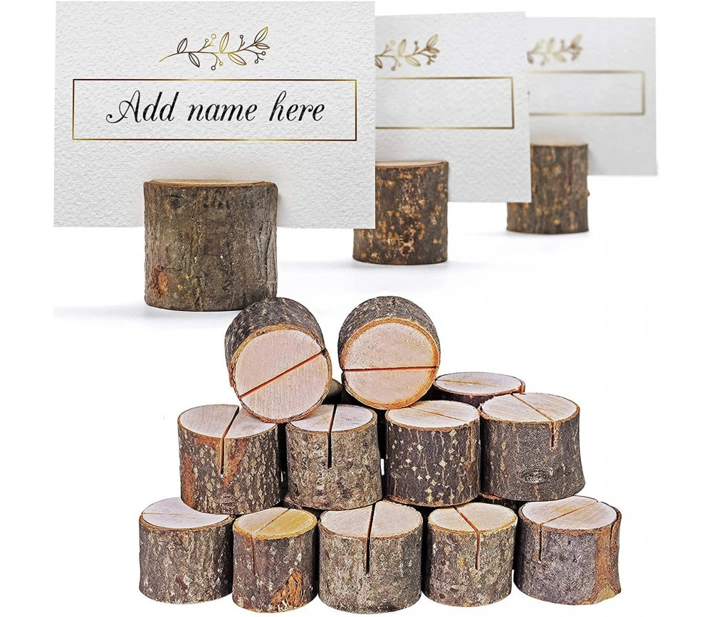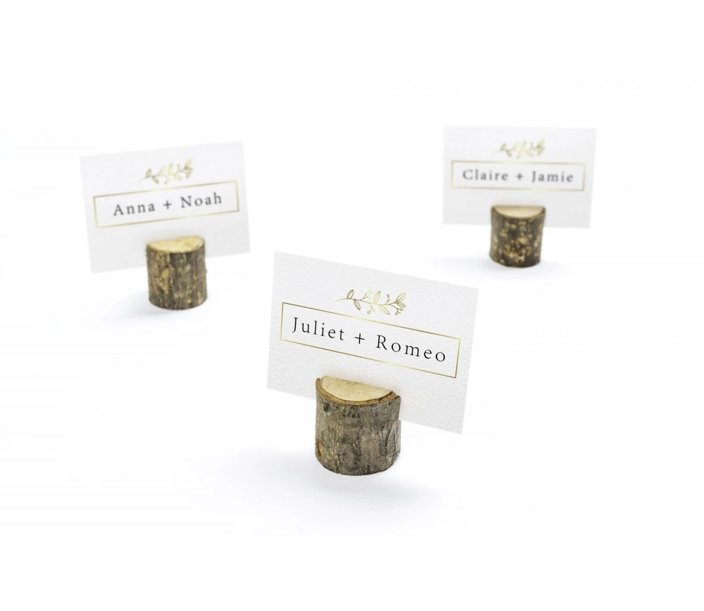 Portes noms en bois avec fente pour insérer une carte. Set de 50 porte-cartes pour décors champêtre et printanier.
