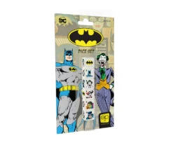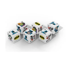 Set de 6 dés avec faces illustrées de l’univers Batman. Retrouvez le Joker et d’autres personnages sur ces dés originaux pour jeux de société à thème.