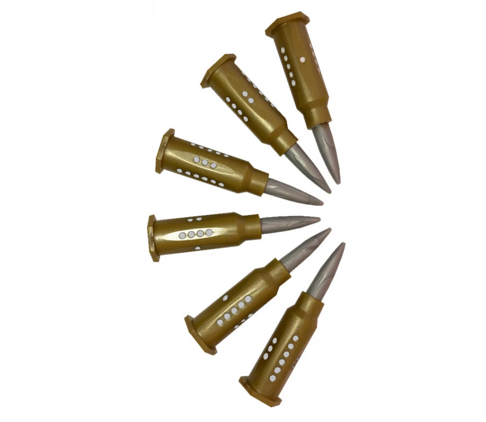 6 Dés à jouer en forme de munition cartouche balle de fusil pour combat dans vos jeux de stratégie.