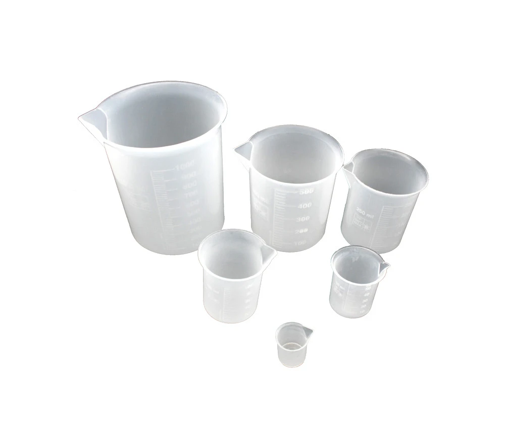 Set de 6 Béchers en plastique semi transparents avec graduation des volume sur le pot :
