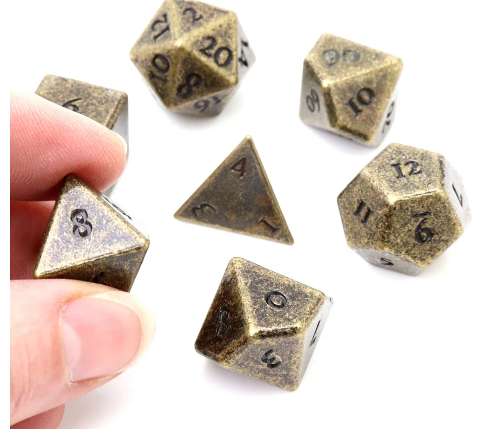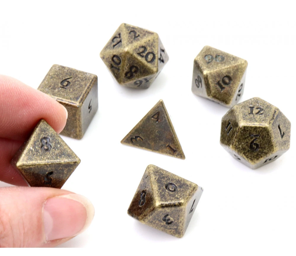 7 dés à jouer en métal bronze pour jeu et collection :