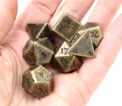 Magnifiques dés en vrai métal bronze vieilli. Dés multifaces en taille standard pour vos jeux de rôle.
