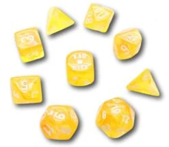 Tube de dés chessex en édition spéciale limitée. Type Boréalis Luminary. Des couleurs éclatantes et lumineuses, dés multifaces de couleur translucide jaune.