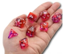 Très jolis dés à jouer translucide pour jeux de rôles ou jeux de société.