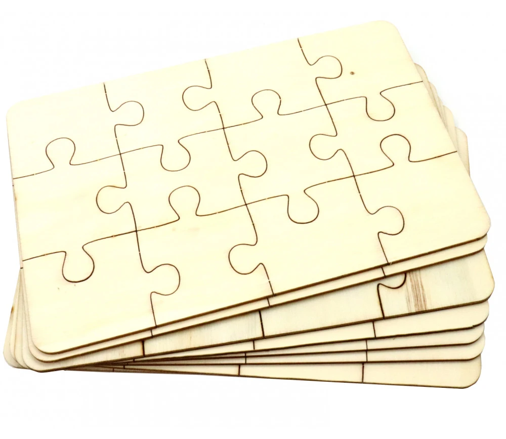 Lot de 8 Puzzles vierges sans décor rectangles en bois 12 pièces à personnaliser, à peindre ou à colorier.