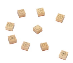 Set de 9 tampons en bois fractions rondes pour les mathématiques.