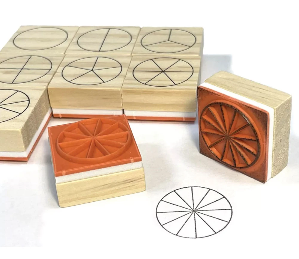 Tampons utilisé par les enseignants pour créer des fiches de travail ou directement par les enfants pour indiquer leurs résultats de leurs fractions