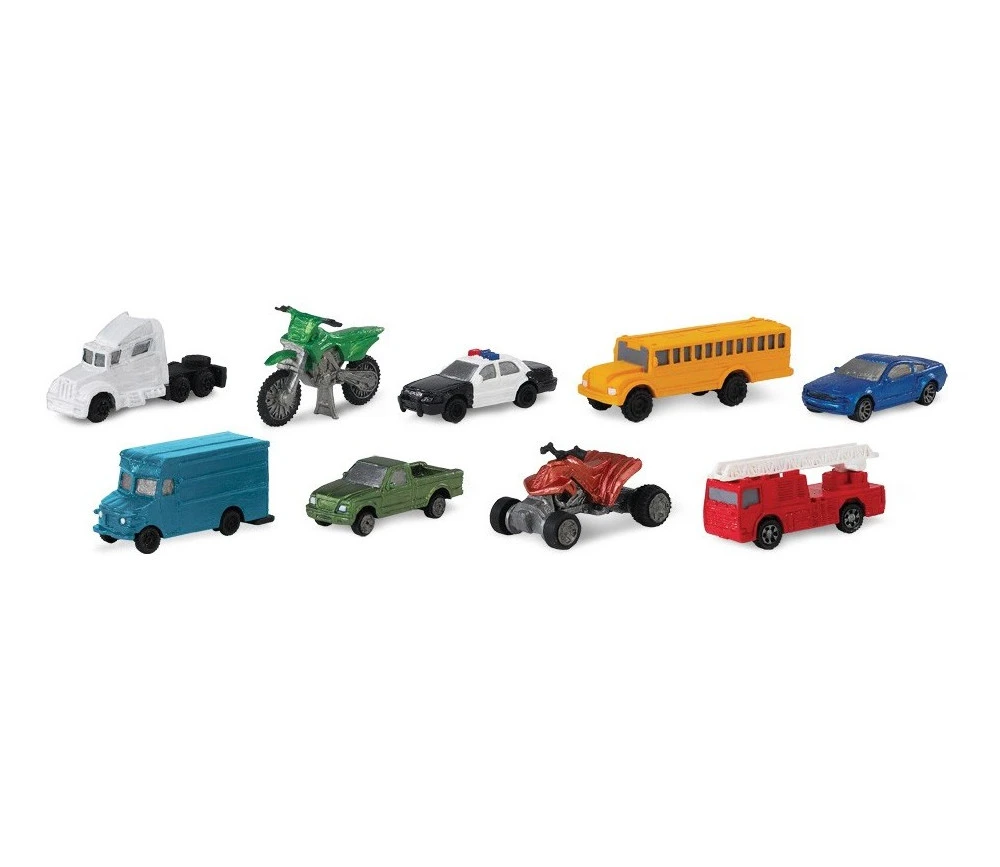 Set de jeu avec 9 véhicules terrestres en miniature :