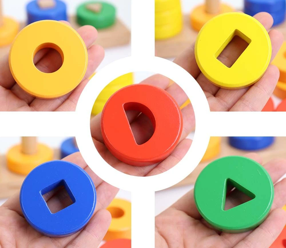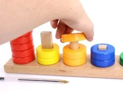 Insérer des anneaux, trier les couleurs, les formes, apprendre à compter…
