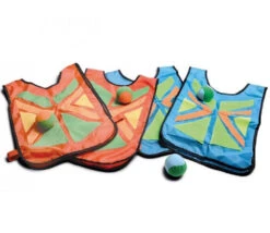 4 gilets avec velcro sur l’avant et l’arrière pour jeu d’adresse et de lancer.